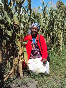 This week, I was at my firm’s field day: an event where we show farmers demonstration plots of maize seed, explain the benefits of hybrid seed, and give away samples. Incognito, I took a photo of this farmer (below), picking up single maize seeds that had fallen from the sample given to other farmers. In other words, she was walking around, picking up maize, grain by grain by grain.